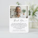 Modern Funeral Photo Script Thank You Cards. Send thanks for the kindness and compassion shown during your time of sorrow with these personalised photo thank you cards for a funeral, memorial or Celebration of Life event featuring a favourite photo of your loved one, your preprinted custom message and modern handwritten script swash typography. The back is blank for the option of handwriting personal notes or add another photo in EDIT. ASSISTANCE: For help with design modification, transferring the design to another product or if you would like coordinating items, contact the designer BEFORE ORDERING via the Zazzle Chat MESSAGE tab below or email makeitaboutyoustore@gmail.com.