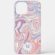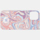 A modern and funky personalised iPhone case with a marble swirl pattern in pastel colours - pink, purple, beige, blue - and your monogram on it.