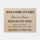 This is Modern Welcome Personalised doormat. This is a great gift for newlyweds or new homeowners. This personalised welcome doormat in chic and durable black features "welcome" in modern, elegant handwritten calligraphy script. Personalise with your family name and year established year.