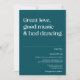 Great love, good music & bad dancing. Modern funny minimal design on deep teal background with trendy typography. The text can easily be personalised for a unique one of a kind design for your special day.