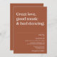 Great love, good music & bad dancing. Modern funny minimal design with trendy typography on terracotta burnt orange background. The text can easily be personalised for a unique one of a kind design for your special day.