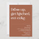 Dress up, get hitched, eat cake. Modern funny minimal design with trendy typography on terracotta burnt orange background. The text can easily be personalised for a unique one of a kind design for your special day.