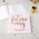 Cute bridal shower guest book featuring a stylish pale pink background that can be changed to any colour, the title "future mrs." in a calligraphy script, plus your name and date in real rose gold foil. This can be changed to gold or silver.