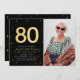 Modern Galaxy Photo Black Gold 80th Birthday Party Invitation