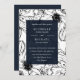 New for the 2019!! Elegant with a contemporary twist our Modern Garden floral wedding invitation features a background of outlined flowers in white and black. Your wedding details are displayed in white against a midnight blue rectangular element. A modern yet timeless design that's perfect for formal celebration in any season of the year.