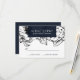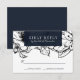 Designed to match our brand new Modern Garden floral wedding collection for 2019, this Elegant and contemporary wedding Rsvp feature a background of outlined flowers in white and black. Your wedding details are displayed in white against a midnight blue rectangular element. A modern yet timeless design that's perfect for formal celebration in any season of the year.