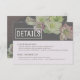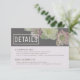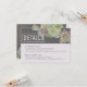 Customise this wedding invitation insert to give guest additional information. Shown with wedding website and hotel block information. Crisp white text on a dark wood background and an abundance of live blooms make this card a standout.