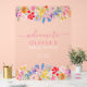 Elegant modern spring summer hand painted flowers watercolor with pretty garden wildflowers and brush script bridal shower welcome transparent sign with a modern calligraphy typography with pink, white, purple, blue, red and orange flowers with greenery.