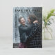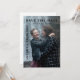A modern minimalist save the date announcement featuring a photo of a joyous happy couple by a waterfall. Available in print, or both.