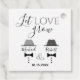 Simple, modern, elegant, black and white gay wedding favour tag with romantic quote: Let Love Grow.