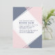 Our ultra modern Bat Mitzvah invitation features asymmetrical colorblock detailing in sheer blush pink and navy blue. Add your ceremony and party details in crisp block typography in matching navy.