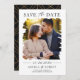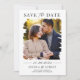 Modern Minimalist Geometric Abstract Script Black White Photo Save the Date Card.