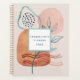 "Modern Geometric Abstract Leaf Foliage w Name Planner." This planner features a watercolor painted abstract design in a neutral earthy colour palette of blush pink, terracotta, rust, aqua and teal blue. Rounded geometric shapes, leaf foliage branch, wavy lines and dots are a tranquil, balance design that speaks of harmony and peace. The reverse side is a 1/2 drop repeat of the pattern. Art by internationally licensed artist and designer, Audrey Jeanne Roberts, copyright.