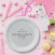 Modern geometric and script graduation party paper plate