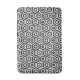 Update your bathroom with a bath mat featuring a modern geometric pattern of tessellated concentric hexagons in three shades.