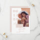 Trendy and modern bold print photo save the date card design. The modern blush rose gold, and tan tone colour palette creates a modern stylish look. "Save The Date" paired with modern bold typography text pairing. Trendy geometric design arrangement with the arched photo frame to display your special photo.