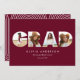 Geometric modern typography elegant natural burgundy multi photo graduation announcement card.