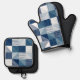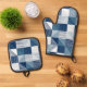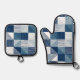 Modern Geometric Checks with Lines in Blue Oven Mitt & Pot Holder Set