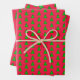 Modern Geometric Christmas Trees on Green on Red Wrapping Paper Sheet