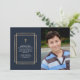 Add photos and your custom thank you message. This design consists of golden geometric frame and a faux gold cross.