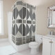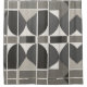 This geometric design features a stylish combination of curves and grid-like sections in shades of grey, white, and black.