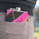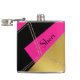 Stylish drinking flask done in a modern look of black, gold and hot pink, with golden glittery triangle accents. Black text is ready to personalise. Lovely gift idea for her.