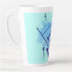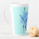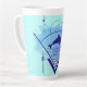 Modern geometric jumping dolphin graphic with  watercolor splash on light aqua background