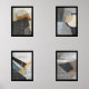 Set of 4 mid-century abstract geometric shapes drawing wall art. Sugester black border frame you can easily change by changing the background colour..