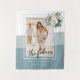 Transform your bridal shower into an elegant affair with our Modern Geometric Dusty Blue Bridal Shower Decor Tapestry. Capture your special moments by personalising this tapestry with the couple or bride's photo, beautifully framed with a shade line for a timeless touch. Delicate rose watercolor elements add a hint of romance, while the contemporary geometric design in a bold dusty blue colour palette (featuring washout blue, shore break grey, and white) serves as a captivating backdrop.