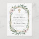 Composed of serif and cursive script typography on white background. Watercolor floral flowers and foliage on geometric frame.