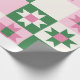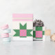 Stylish geometric wrapping paper featuring a repeating patchwork pattern in soft pink, green, and cream tones. The symmetrical ribbon-inspired shapes create a modern yet playful look, perfect for birthdays, weddings, baby showers, holidays, and special celebrations. Ideal for gift wrapping, craft projects, and decorative packaging.