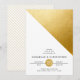 A simple, modern wedding invitation with a striking gold foil diagonal graphic. The back features a gold diagonal print.