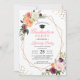Modern Geometric Gold Frame Chic Floral Graduation Invitation