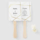The fans are very pretty and easy to assemble. We utilized the original template and just inserted the names of our wedding party. After the product arrived we noted they read,”Made of Honor” rather than “Maid of Honor”. Upon re-checking the website we noticed the typo is in the original template and was not a mistake on our end. It is too late to return because our wedding is in just a few days but if we had time we would certainly request an exchange. See review above regarding typo.