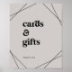 This modern geometric gray cards and gifts sign is perfect for a simple wedding or bridal shower. The classic design features bohemian geometric diamond and triangle shapes and rustic boho typography with a chic modern industrial feel. The line of text at the bottom of the sign can be personalized with the date, the names of the bride and groom, or a short message like "Thank you". This sign can be used for a wedding or any event or party.