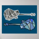 modern geometric guitars music on blue poster