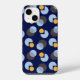 This stylish phone cover features an elegant geometric pattern with overlapping circular shapes in soothing blue tones, accented with vibrant yellow dots. The dark navy background enhances the contrast, giving it a sleek and sophisticated look. Perfect for those who love minimalistic yet artistic designs, this cover adds a contemporary touch to your device.