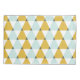 Trendy geometric pattern with mint blue, golden yellow and white triangles.
