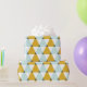 Trendy geometric pattern with mint blue, golden yellow and white triangles.