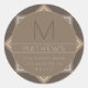 Modern Geometric Name & Monogram | Beige Classic Round Sticker