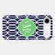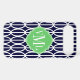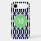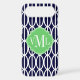 © Socialite Designs. Our modern geometric oval design in dark blue and white case has a banner for your monogram, initials or name. You can change the background colour by customising it to suit you.