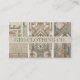 Minimalist geometric business cards in oatmeal taupe and soft black. Traditional modern simple elegant stylish white chic neutral earthy quilt patchwork collage handmade clothing leaf design.