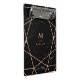 This elegant clipboard features a black marble look background with faux rose gold geometric lines. Personalise with your monogram and name.