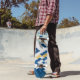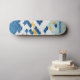 Modern Geometric Pattern Blue Gold Custom Name Skateboard
