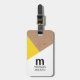 Modern customisable luggage tag design with bold monogram and geometric background.