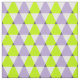 Trendy geometric pattern with purple, lime green and white triangles.