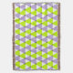 Trendy geometric pattern with purple, lime green and white triangles.