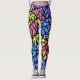 These modern abstract legging are featuring a geometric pattern of bold, black irregular lines against a colourful blue, red and yellow background. The geometric shapes remind of a forest with intricate branches or a stained glass.