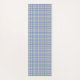 This yoga mat features a colourful geometric pattern in white, grey, black, and red.