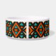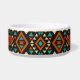 This is a modern interpretation of a tribal design. The geometric pattern and complimentary colors make it an attractive design for your friends food dish..